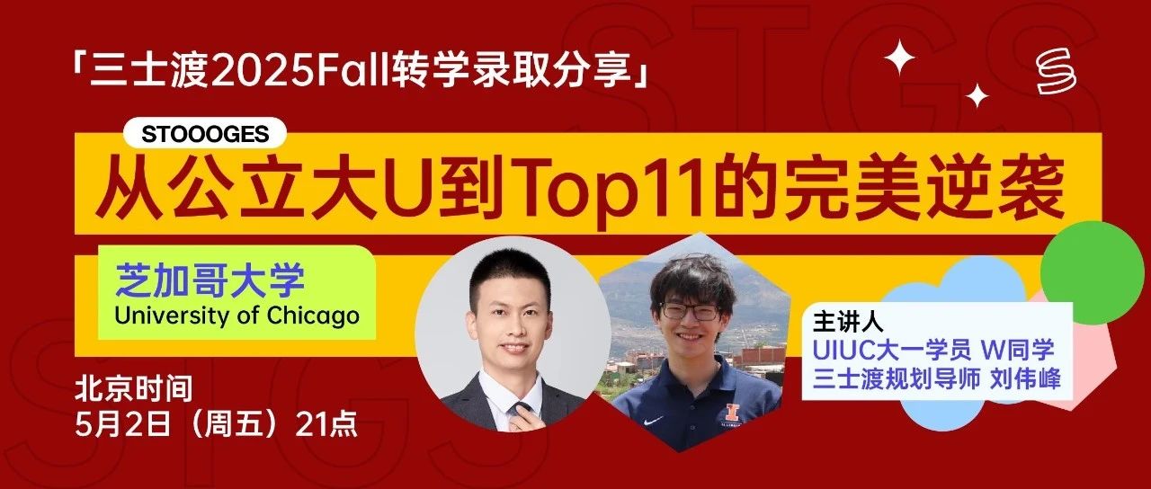 今年4月初,芝大发布了2025Fall的转学早申请结果通知,三士渡共有6位学员喜获录取!