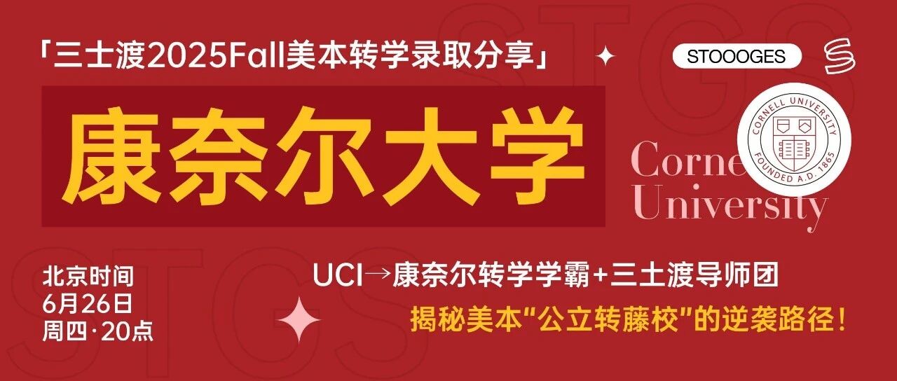带来一场【从公立大学转学到藤校】的录取分享会,及时解答大家的各种问题,也给所有想转学的同学提供一条清晰的行动路径!