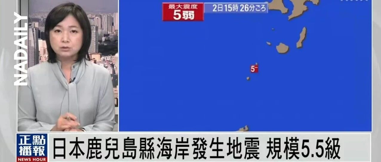 当地时间7月2日15时26分,日本鹿儿岛县吐噶喇列岛近海发生5.5级地震,震源深度仅10公里,最大震度达到日本气象厅震度等级的"5弱"。