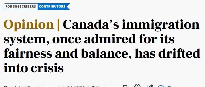 2025年7月17日,加拿大媒体《多伦多星报》发表评论员文章对加拿大移民系统的悲剧性危机进行了严厉指责——