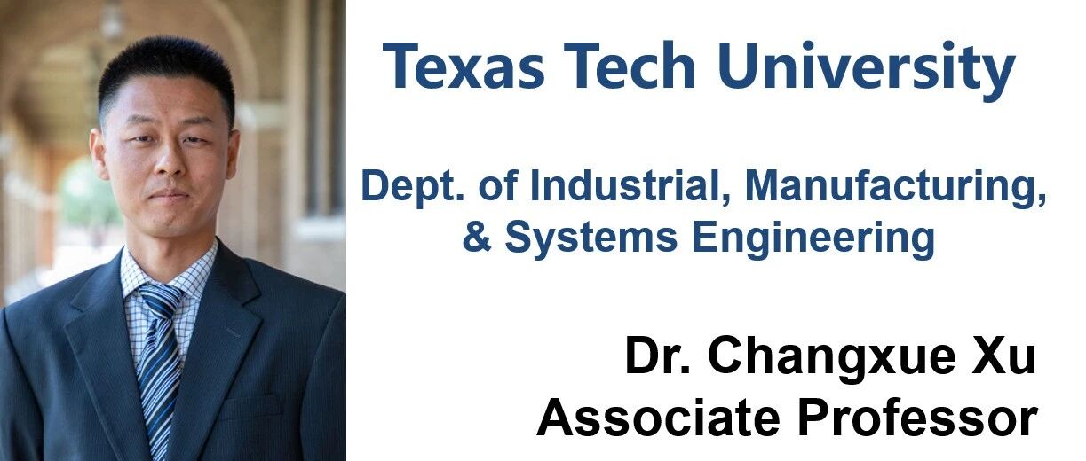 Dr. Changxue Xu是德州理工大学工业、制造与系统工程系副教授,他于克莱姆森大学获得机械工程博士(2009–2014),后在佛罗里达大学机械工程做博士后(2014-2015)。Dr. Xu的主要研究聚焦在3D打印和先进制造技术在组织工程与再生医学方面的应用。比如生物打印组织和器官,癌症药物筛选和癌细胞在微环境下迁移等方面的应用。