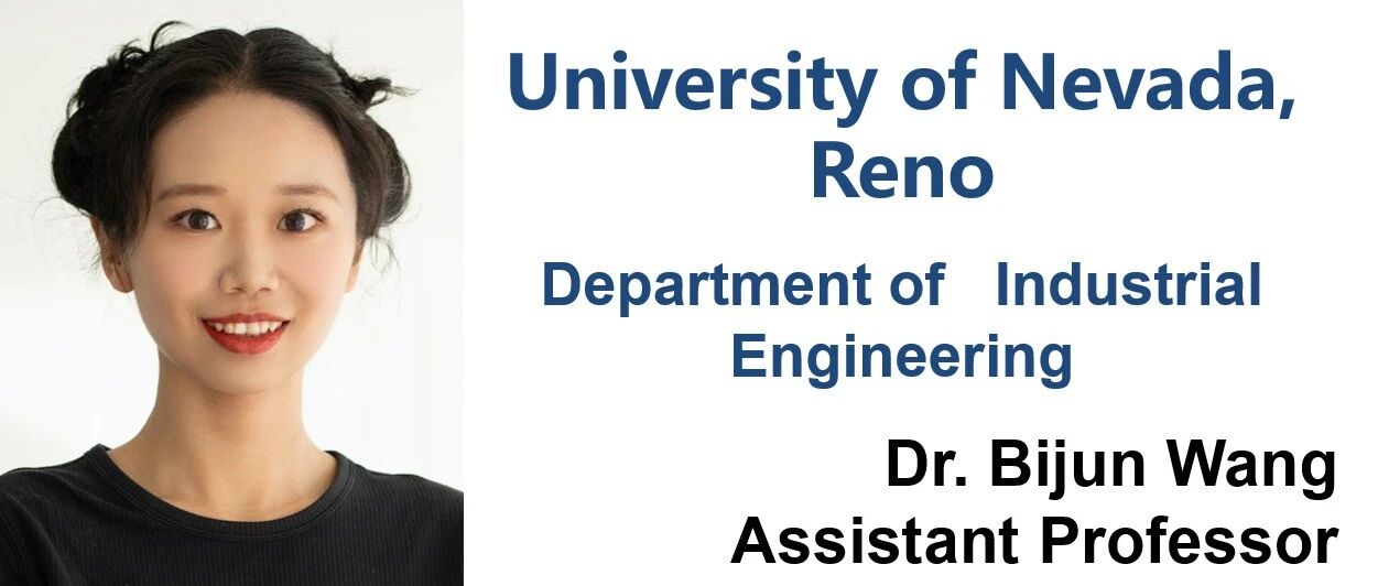 Dr. Bijun Wang,于2025年秋天加入University of Nevada, Reno 任工业工程助理教授;Ph.D. in Engineering Management, Stevens Institute of Technology;Two M.S. degrees, Rutgers University。研究聚焦 Human Factors、Digital Health、HCI 与 AI-Driven Healthcare Systems / Smart and Connected Healt。成果发表于 IISE Transactions on Healthcare Systems Engineering、International Journal of Medical Informatics等,并与临床伙伴开展跨学科合作现面向 Spring 2026(优先)或 Summer/Fall 2026 招收 1–2 名全奖 Ph.D. 学生。