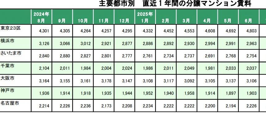 8月份公寓租金与上月基本持平,为3,857日元/平方米。