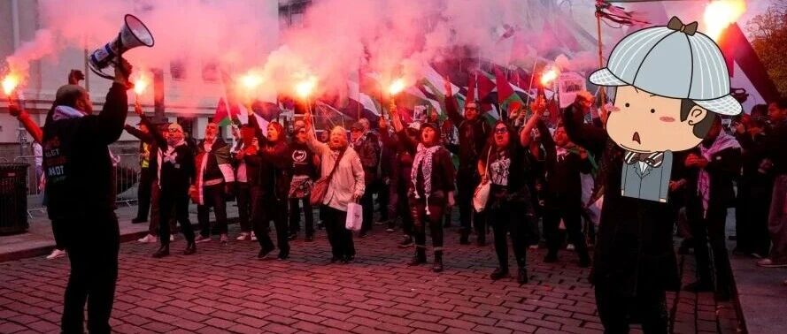 据BBC报道,游行过程中,可以看到写有"以色列"和"巴勒斯坦"的口号。