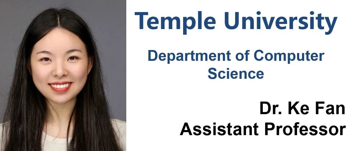 Dr. Ke Fan(范珂) 于 2025 年秋季加入天普大学(Temple University)计算机与信息科学系(Computer and Information Sciences, CIS)担任助理教授,主要从事高性能计算、大数据处理和科学数据可视化等领域的研究。