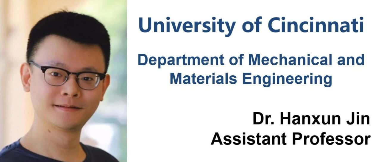 辛辛那提大学(UC)创立于1819年,是全美第二古老的公立研究型大学,被Nation Science Foundation评为Top 25的公立研究型大学,同时是美国R1顶级研究型大学。UC以卓越的科研实力与创新精神著称,其工程与应用科学学院以全球首创的带薪实习(Co-op)项目闻名,为学生提供与工业界、政府及医疗机构的深入科研与实践机会。学校还与重庆大学创办了重大-辛辛那提中外联合学院,推动国际化工程教育与科研合作。 学校位于俄亥俄州第二大城市辛辛那提市中心,这是一座科技与医疗产业发达、企业资源丰富、生活成本低且文化多元的创新之城。世界500强中总部设在辛辛那提的有10家,比如宝洁、梅西百货等。全市大约有400多家世界500强公司分支,是全美世界500强企业最密集的城市之一。更多信息请访问:www.uc.edu;www.uc-china.com 导师介绍: Dr. Hanxun Jin将于 2026 年 1 月加入辛辛那提大学机械与材料工程系,担任助理教授。金博士于 2022 年在布朗大学获得固体力学博士学位,随后在美国西北大学和加州理工学院师从力学顶尖学者Horacio Espinosa和Julia Greer 院士,开展微纳米力学与微结构超材料的设计、制备与表征研究。金博士目前在圣路易斯华盛顿大学从事科研工作,跟随Guy Genin 院士(美国NSF生物机械学中心联合主任)。金博士的研究位于实验力学、人工智能与生物制造的交叉前沿,致力于发展多尺度实验表征与数据驱动设计方法,构建具有高韧性、智能响应与可持续性的生物结构材料,服务于未来个性化医疗的发展。研究成果已发表于Advanced Materials、Science Advances、Journal of the Mechanics and Physics of Solids、Applied Mechanics Reviews等期刊,并荣获 2025 Rising Stars in Materials Science、SES Future Faculty Symposium Award 等荣誉。 课题组科研经费充足,鼓励研究人员在国际顶级期刊发表高水平论文,参与国际学术会议与交流活动。实验室全力支持博士生的职业发展,为其提供学术指导与资源,推荐至知名高校及国际一流科研团队深造或担任教职。 教师个人主页:https://www.nanobiomech-lab.com