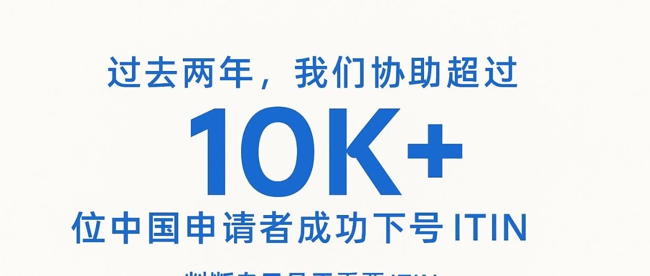 过去两年,我们团队协助超过 10K+ 位中国申请者成功下号 ITIN,涉及美股投资、亚马逊 FBA、开美国银行账户、联合报税、跨境服务等多类场景。