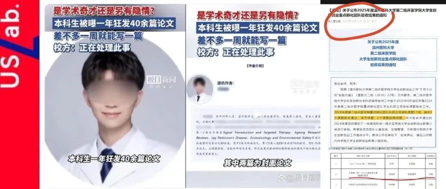 公开资料显示,该本科生是温州医科大学2022级某五年制专业的大四本科生洪同学。据洪某某的谷歌学术个人页面,他的第一篇论文发表于2024年7月,2025年全年,他发表的论文共有40多篇。