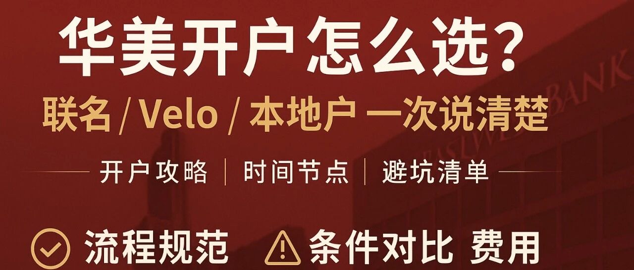 这两年,想开华美银行账户的人越来越多。市场上主流有三种路径:直接开 华美本地账户走 italkbb 联名预付卡开户通过 Velo 这种跨境方案很多人私信我们:"到底选哪个最稳?