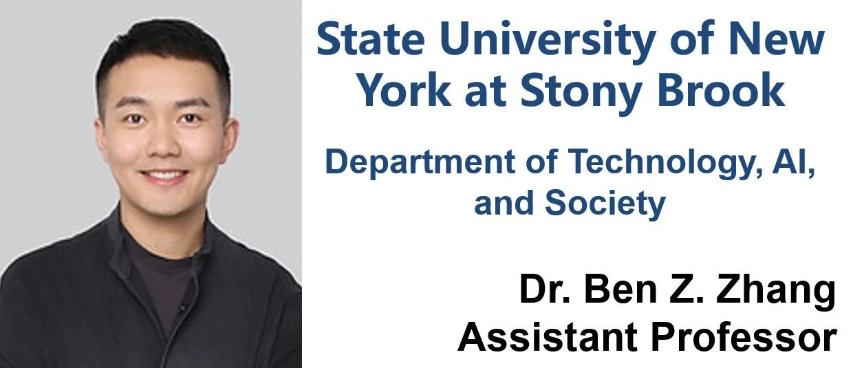 Ben Z. Zhang, Ph.D. 现任 Stony Brook University 工程与应用科学学院(CEAS)技术、人工智能与社会系助理教授。他的研究聚焦于人工智能赋能系统在关键社会情境(如工作、健康、教育与可持续发展)中的生产过程及其社会技术影响,旨在推动理论创新,并为更加公平、以人为中心的设计与政策干预提供实证依据。为此,他采用以生命周期为核心的多方法研究路径,系统分析 AI 基础设施从开发、部署到治理全过程中所蕴含的承诺、不平等与"隐形劳动"。 他的研究成果发表于多个计算与信息领域顶级会议与期刊,包括 ACM Conference on Human Factors in Computing Systems(ACM CHI)、ACM Conference on Computer-Supported Cooperative Work and Social Computing(ACM CSCW)、ACM Web Conference(ACM WWW)、AAAI International Conference on Web and Social Media(ICWSM)以及 Journal of Computer-Supported Cooperative Work 等,同时也活跃于跨学科平台如 SMSociety、4S 与 AoIR。他的研究获得多项奖项与资助支持,包括来自 University of Michigan Rackham Graduate School 与 Weizenbaum Institute 等机构的奖学金与研究资助。此外,他的研究实践亦被《Der Spiegel》《China Daily》《States Newsroom》等国际媒体报道。