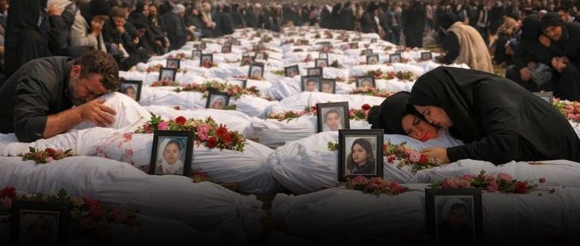 翻译:这些是为160多名在美以轰炸小学事件中丧生的无辜年轻女孩挖掘的坟墓。她们的身体被撕成碎片。